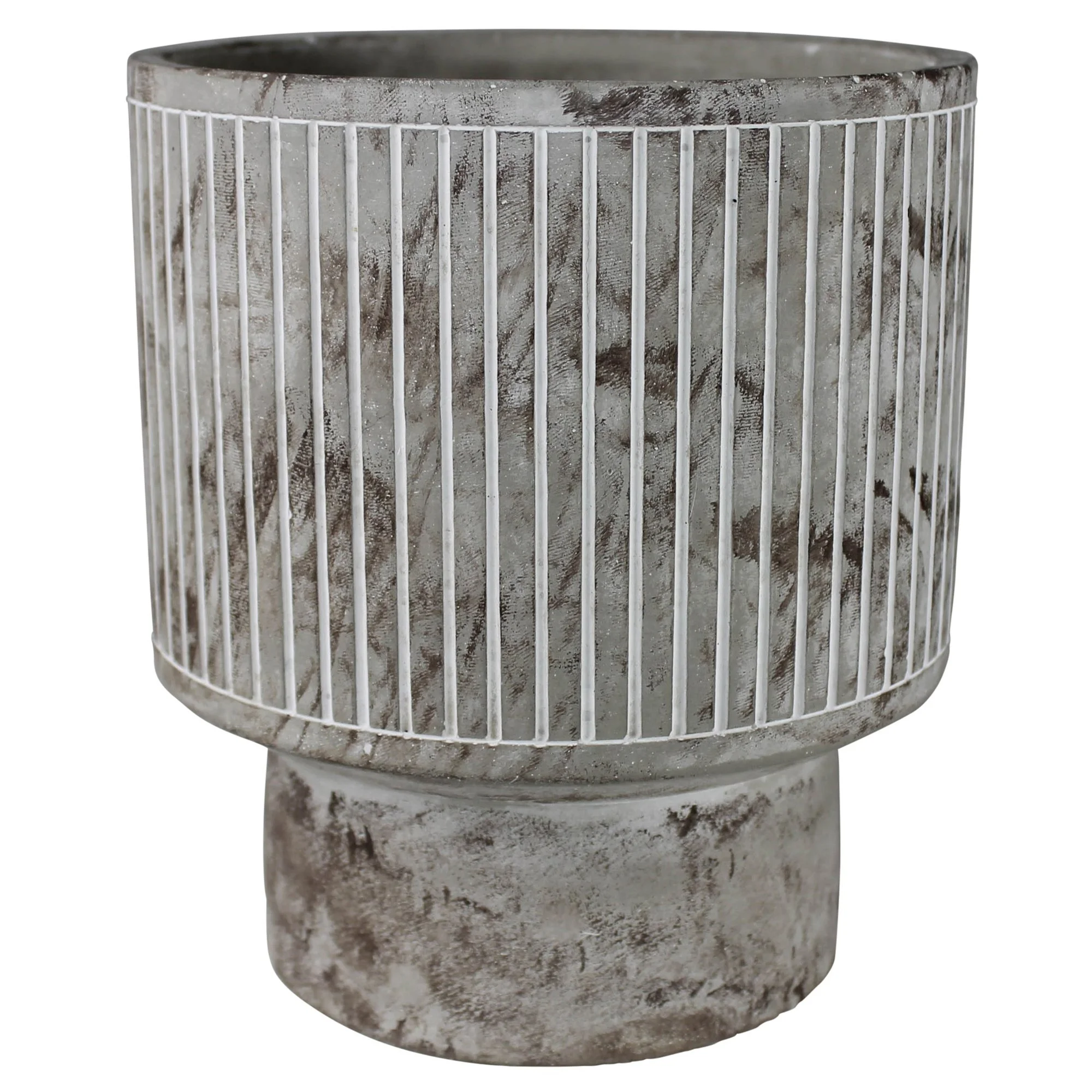 Constructed from sturdy cast cement with a ridged texture and soft patina finish this cachepot brings a rustic nod to garden decor. Watertight.
